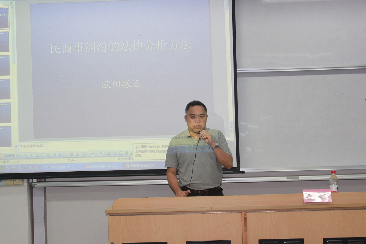 2012年6月6日,应beplay全站 邀请,广东省高级人民法院高级法官、中国证监会行政处罚委员会委员、法学博士欧阳振远在我校二教讲授了关于“民商事纠纷的法律分析方法”的讲座。讲座由beplay全站 副院长、教授、博士生导师马洪主持。