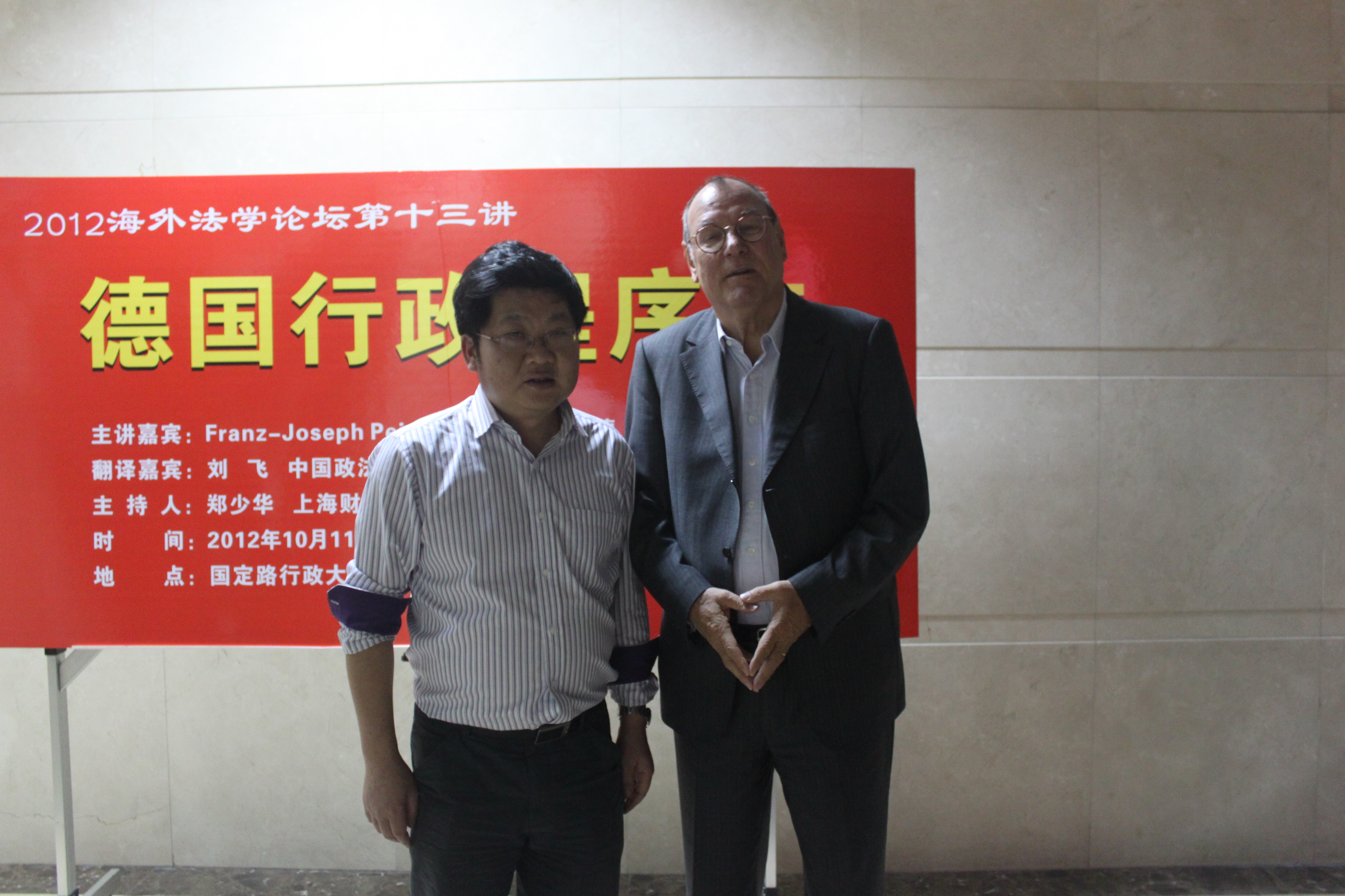 10月11日晚,2012海外法学论坛第十三讲在校行政楼一楼梯教成功举行。法兰克福(奥德)大学法学院Franz-Joseph Peine教授作了题为“德国行政程序法”的专题讲座。本次讲座由中国政法大学法学院刘飞教授担任翻译嘉宾,郑少华院长主持。