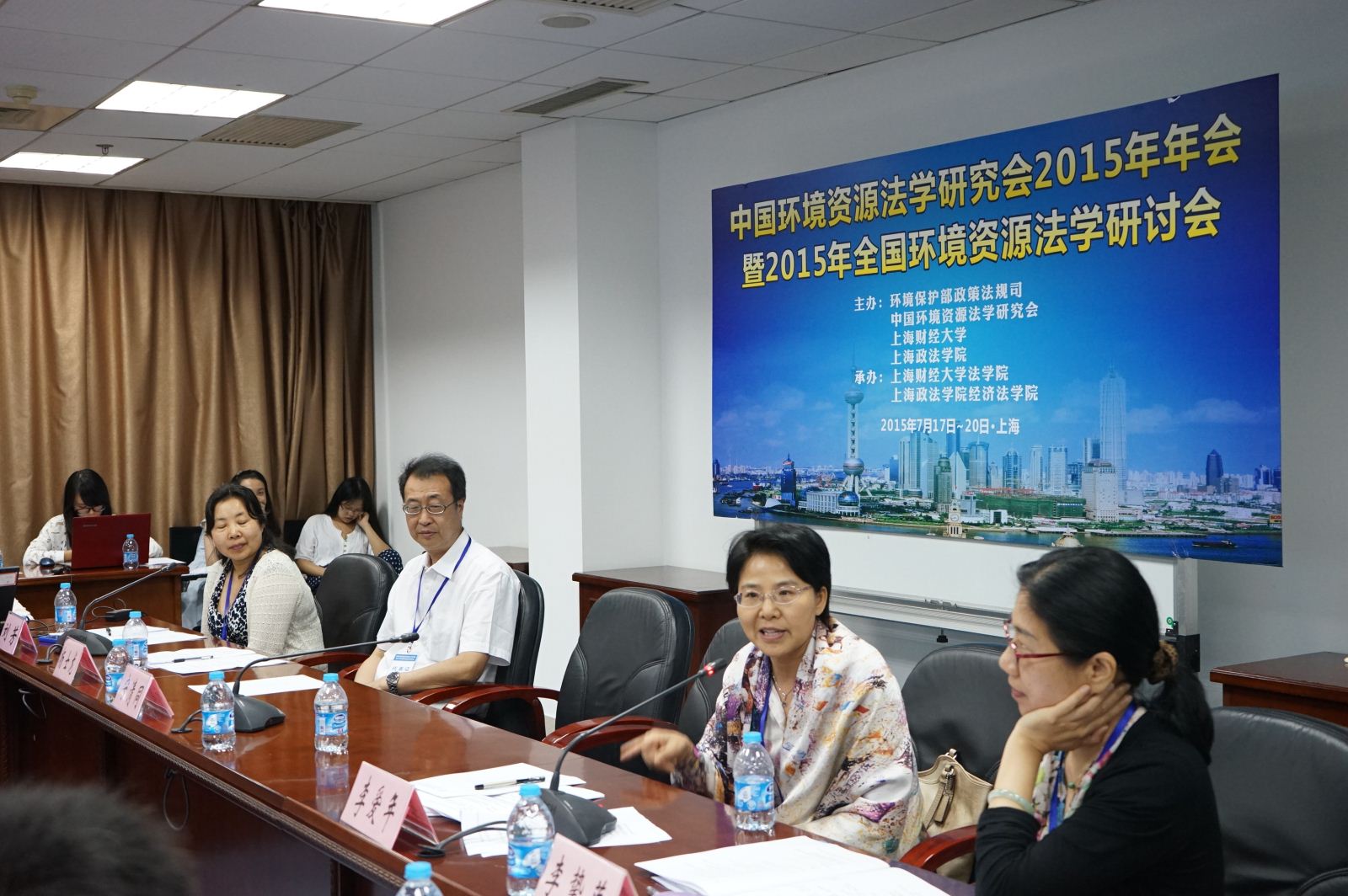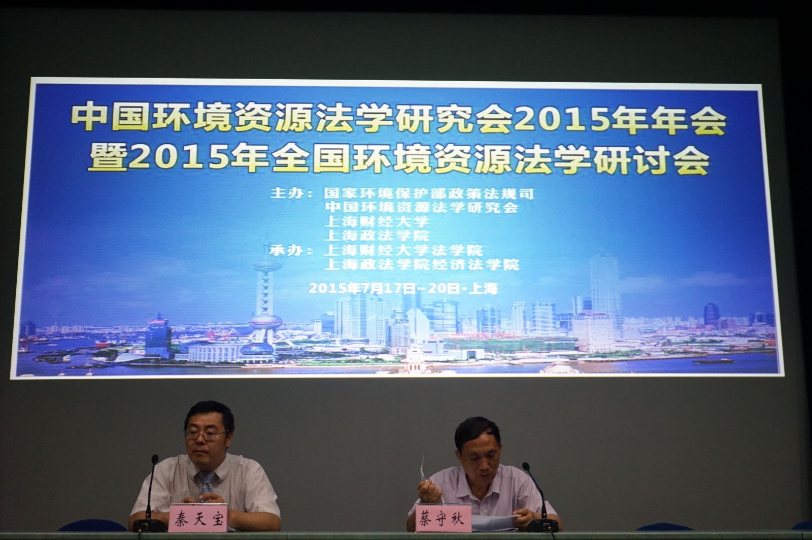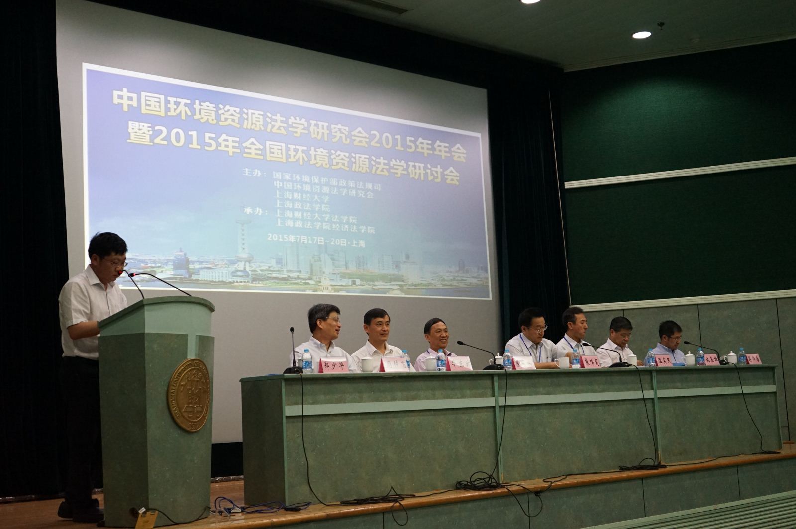 2015年7月18日上午,由环境保护部政策法规司、中国环境资源法学研究会、上海财经大学、上海政法学院主办,beplay全站 和上海政法学院经济法学院联合承办的中国环境资源法学研究会2015年年会暨2015年全国环境资源法学研讨会在我校隆重开幕。大会开幕式由中国环境资源法学研究会副会长、上海财经大学校长助理郑少华教授主持。中国法学会副会长张鸣起、上海财经大学副校长蒋传海教授,上海政法学院校长周仲飞教授,环境保护部政策法规司处长温英民,最高人民法院环境资源审判庭廉政监察员毕东升法官,上海市法学会专职副会长施基雄,中国环境资源法学研究会会长蔡守秋教授等出席开幕式。