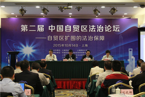2015年10月14日下午,由上海市法学会、上海财经大学主办,中国自由贸易试验区协同创新中心、上海市法学会自贸区法治研究会和beplay全站 承办的第二届中国自贸区法治论坛在上海建国宾馆召开。本次论坛以“自贸区扩围的法治保障”为主题,来自中国法学会、上海市法学会、上海市人民政府法制办、上海市商务委员会、上海市人民检察院、上海市第一中级人民法院、上海国际仲裁中心、福建省委党校、福建省人大、津粤闽豫等地法学会等单位以及上海交通大学、厦门大学、对外经济贸易大学、华东政法大学、上海大学、上海师范大学、上海政法学院、上海财经大学等高校的百余位专家学者代表围绕“自贸区扩围的制度创新与保障”、“对接国际高标准的投资贸易规则”等专题进行了集中讨论。