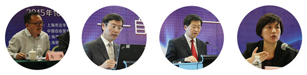 主旨报告阶段由上海市商务委员会副主任申卫华主持。中国法学会对外联络部主任谷昭民以《大力开展法律外交,引领自贸区法治建设》为题发言,他梳理了法律外交的背景和发展趋势,并对自贸区建设中法律外交作用的体现进行了探讨。上海市人民政府法制办主任刘华以《上海自贸区的法治化营商环境建设若干问题探讨》为题发言,她从投资开发、贸易自由、财产权保护、争议纠纷的高效解决等几个方面提出建设法治话营商环境,实现公正高效的执法管理。福建省委党校自贸区法治研究院执行院长王利平教授在题为《自贸区制度创新的困境与路径》的报告中指出,行政逻辑代替市场逻辑是自贸区制度创新的困境,要想解决这个困境,需要利用条例制定的过程,解决好改革创新与法治保障、集中规制与分片调试的关系。