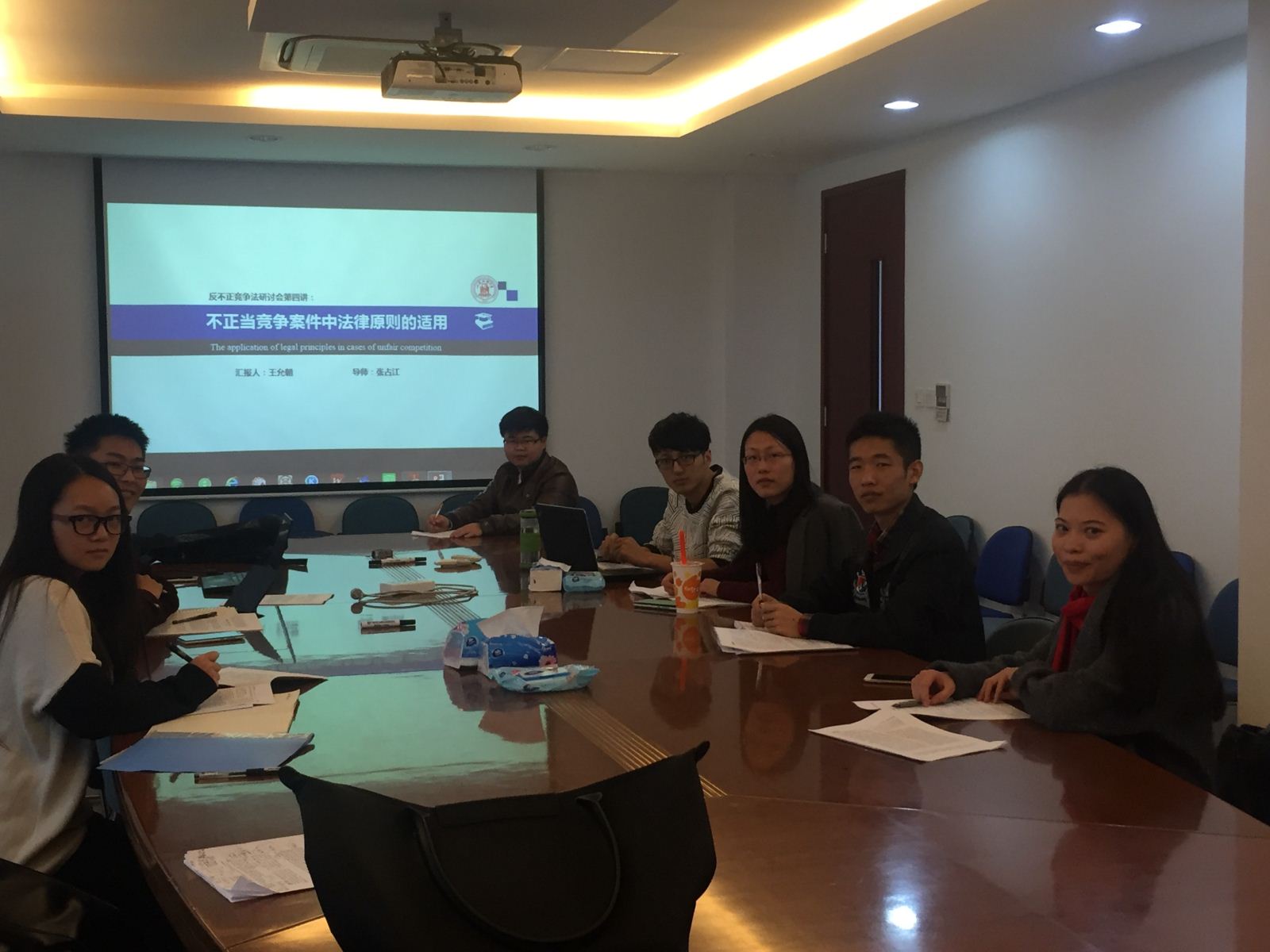 2015年12月6日14点至16点,竞争法专题研讨第四期在研究生院304会议室举行。本次研讨会的主题是“不正当竞争案件中法律原则的适用”,法学院张占江副教授及其指导7位硕士研究生参加了本次研讨。