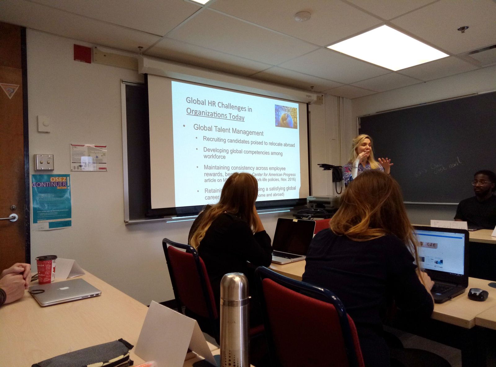 本次交流学习,刘琦、周卢凡两位同学选修了劳动关系与全球化 、国际人力资源管理两门课程。对于法学院学生而言,这是两门课是既熟悉又陌生的,其与劳动法学有着千丝万缕的联系,为之提供了广阔的背景知识和独特的研究视角。与此同时,两门学科已逐渐形成了自身的鲜明特色,在中国更呈现如火如荼的发展态势。