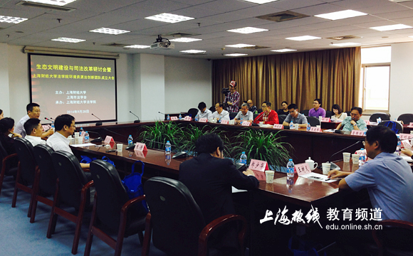 上海热线9月28日讯,今天,由上海财经大学召开了“生态文明建设与司法改革研讨会”,同时宣布了beplay全站 环境资源法创新团队正式成立。本次研讨会由上海财大与上海市法学会联合主办,并由财大法学院承办,来自武大、中国政法、中南政法、同济、上大等高校以及最高人民法院等机构的环境法领域专家学者约四十余人汇聚一堂,就“生态文明建设与司法改革”的会议主题展开研讨。
