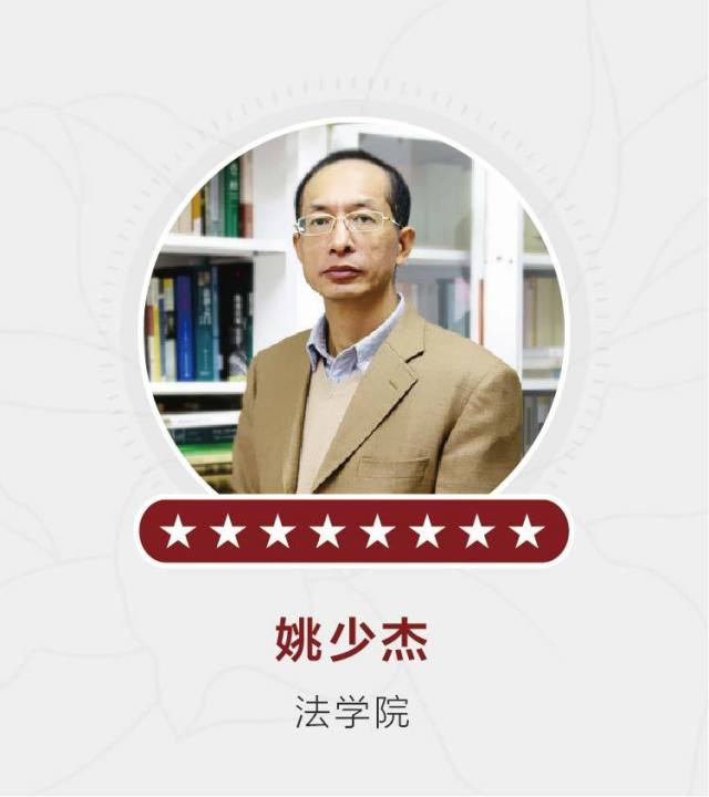 姚少杰,法学院法学理论专业讲师,主要开设《中国法制史》、《外国法制史》、《西方法律思想史》、《中外法律文化 》、《传统中国的法律与社会》等课程,他把法学教育事业作为志业,先后8次获评“我心目中的好老师”。