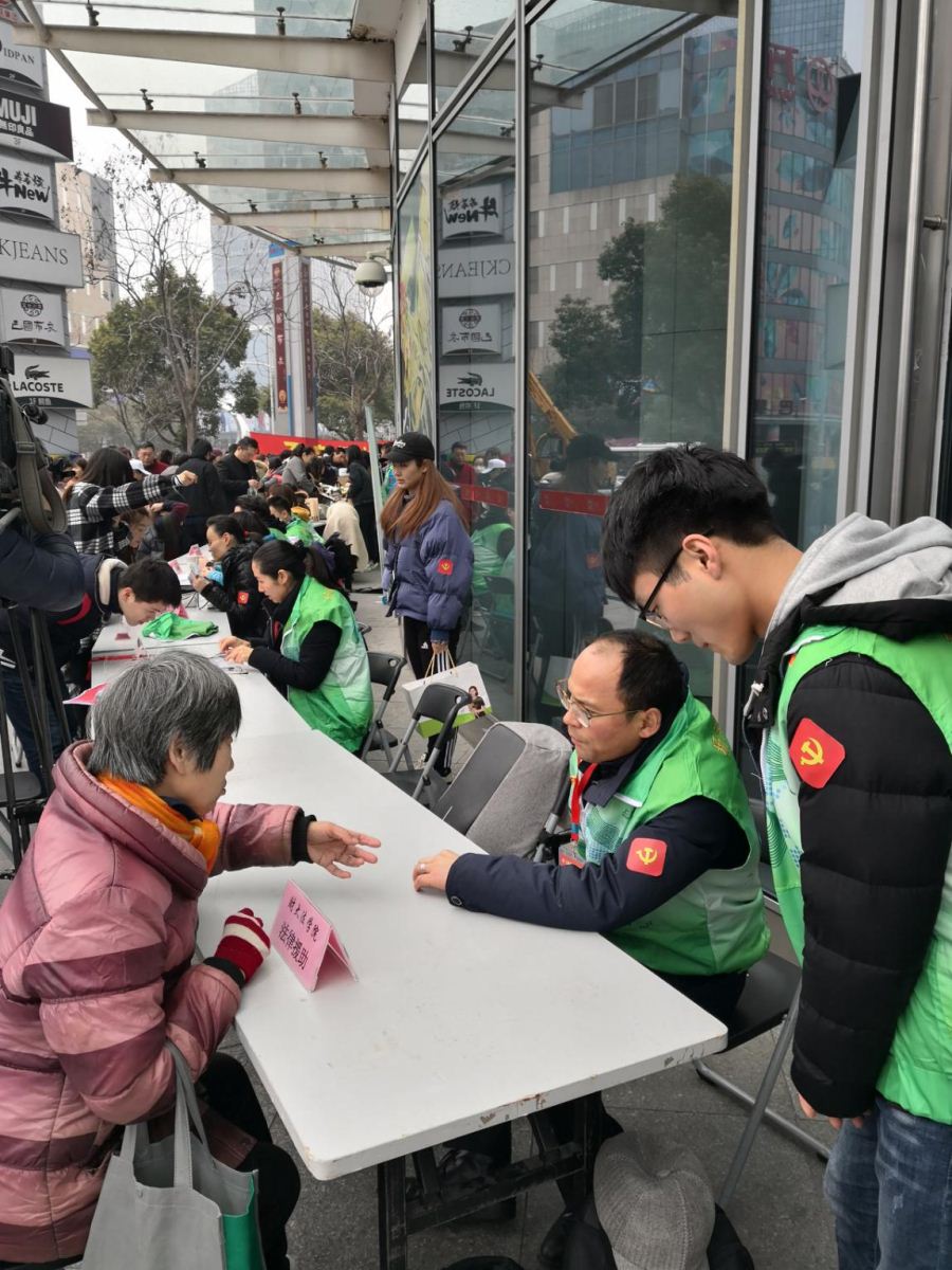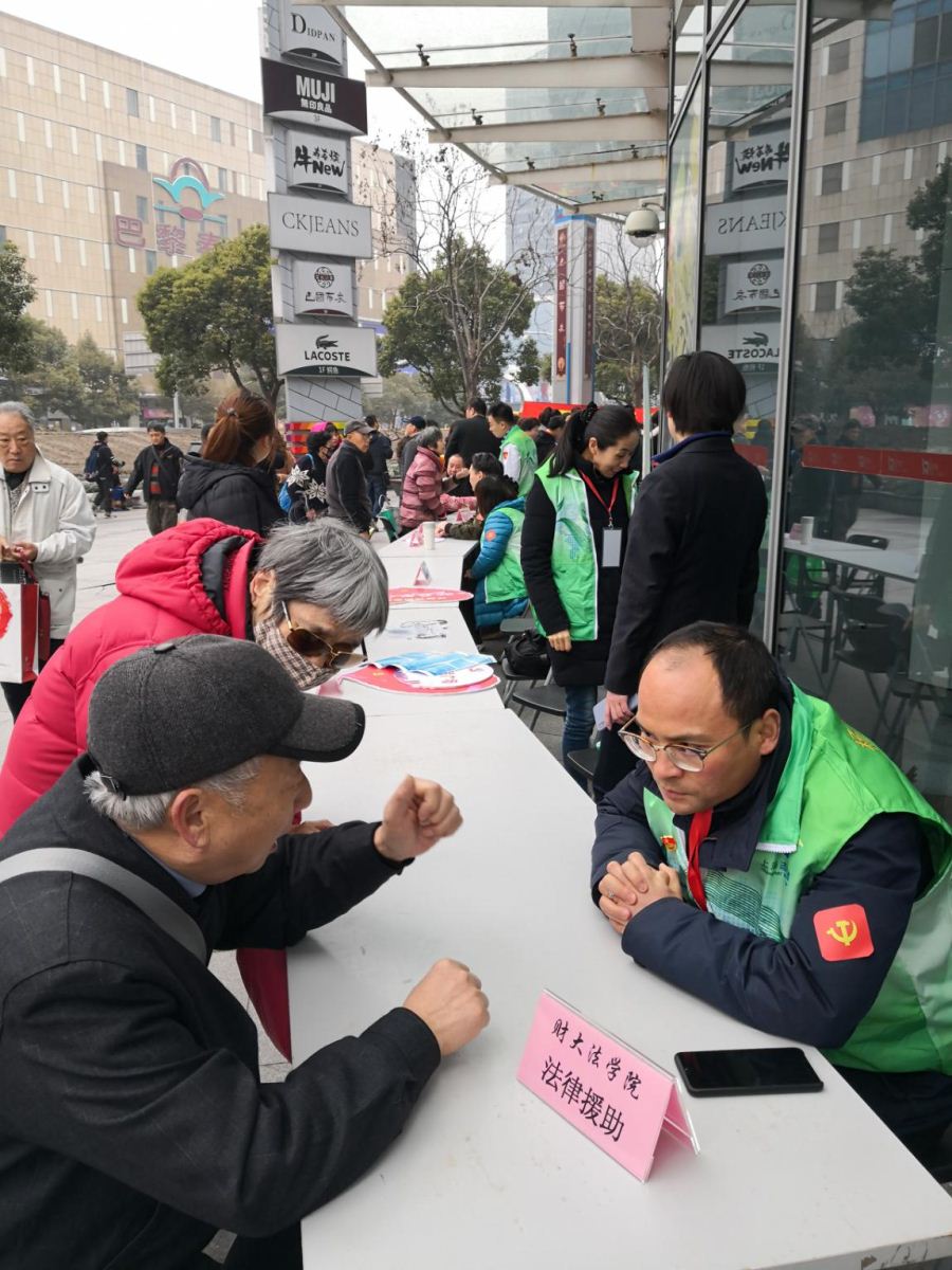 上午9点,志愿者活动在五角场百联又一城购物中心的南门广场拉开序幕。三月早晨的风仍然凛冽,气温较低,但现场气氛十分热烈,活动还未开始便有市民驻足咨询。法律专业问题也好,生活琐细咨询也罢,樊健老师和同学们耐心为市民进行解答。可以看到被法律问题困扰已久的市民舒展眉头,可以看到年过半百的老人诉说疑惑后的宽慰,党员志愿者们为他们提供的法律咨询服务,让普通市民内心都感受到由衷的喜悦,市民们对党员志愿者认真的倾听与专业的解答给予了充分的肯定和认可。