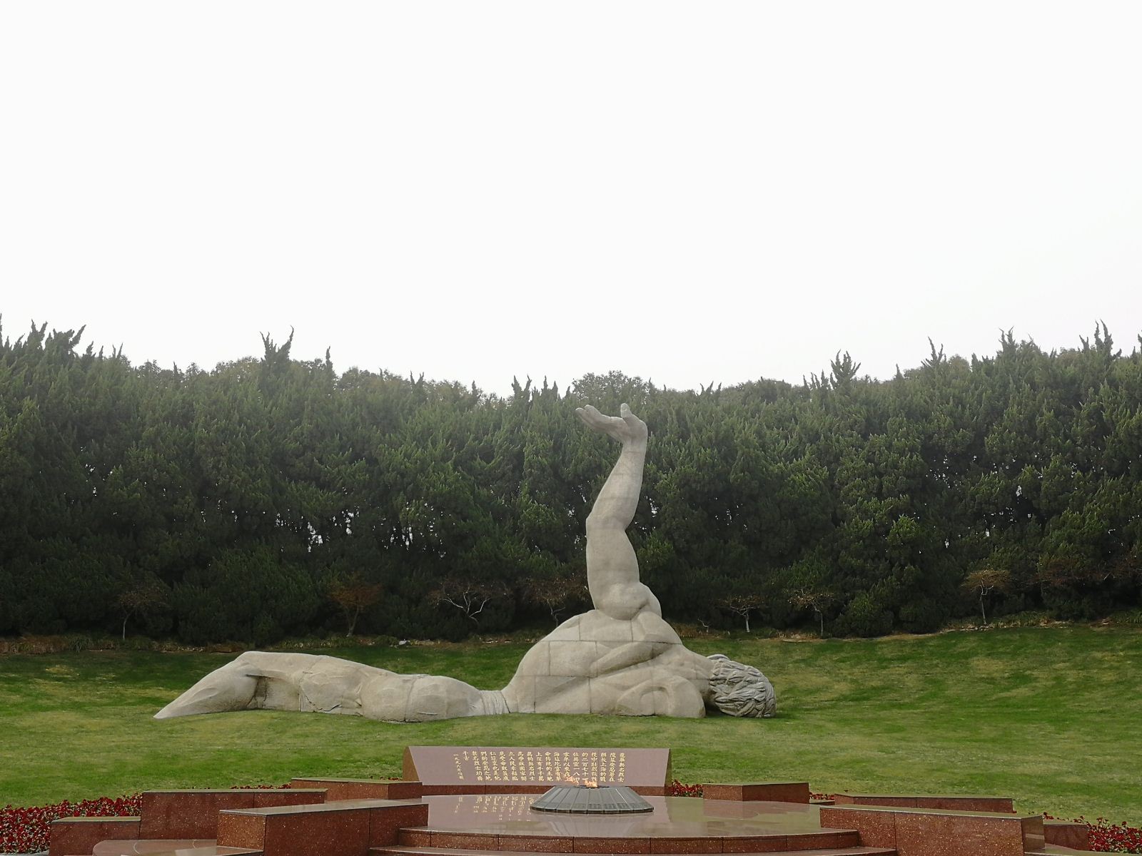 从纪念馆参观出来,走过东西副轴线的碑林,同学们来到了烈士墓区,它由烈士纪念堂、烈士墓和无名烈士墓组成。一座巨大的半身石像背对着前来祭奠的人们,半身露出地面,左手挣扎着向天空托起,托起了革命的希望,奋力的革命精神让每一个前来瞻仰革命英烈的人们无一不为之震撼。分布在石像旁的是革命烈士们的墓地,郁郁葱葱的草丛里便是英雄们的长眠之地。雕像前的长明火昼夜燃烧,经久不息,象征着革命英雄们的精神永远引领着中国人民不断进步,走向更美好的未来。行至此,默哀许久后,小组成员慢慢离开了龙华烈士陵园。