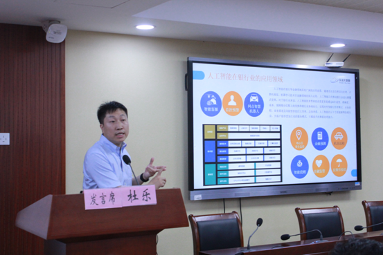 武汉东湖大数据交易中心股份有限公司杜乐总经理做第一个发言。首先杜经理认为当前人工智能处于弱智能时代,但人工智能前景很好。其次在人工智能在金融机构智能客服、反欺诈授信等领域的应用做了列举,并认为人工智能在中小银行的应用催生了金融创新。之后他也对人工智能应用产生的待解决的问题进行反思,如在算法歧视的法伦理思考、人工智能中立性以及应用人工智能在劳动和社会保障制度层面形成的挑战几个层面探讨了人工智能应用的影响。