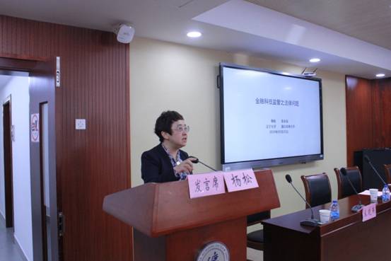 辽宁大学法学院院长杨松教授首先发言。她的发言题目是“金融科技监管的法律问题”。杨教授分析了金融科技在降低准入门槛、提高效率,降低成本、实现金融公平以及科技中立性带来金融法治平权观念等影响。在建立于或适应于金融科技的监管科技方面,杨教授认为监管科技以数据为核心、以技术为基础、以全过程监管为特征,并指出科技监管在监管关系扁平化、减少监管者主观因素等优势下的同时,也面临监管成本提高、增加风险隐蔽性、需要监管国际合作等一系列问题,要克服以命令控制监管,人工监管作为主要特征的传统监管的弊端。最后她以智能化监管为例,分析了其在整合监管目标、转变监管模式上的独特作用。
