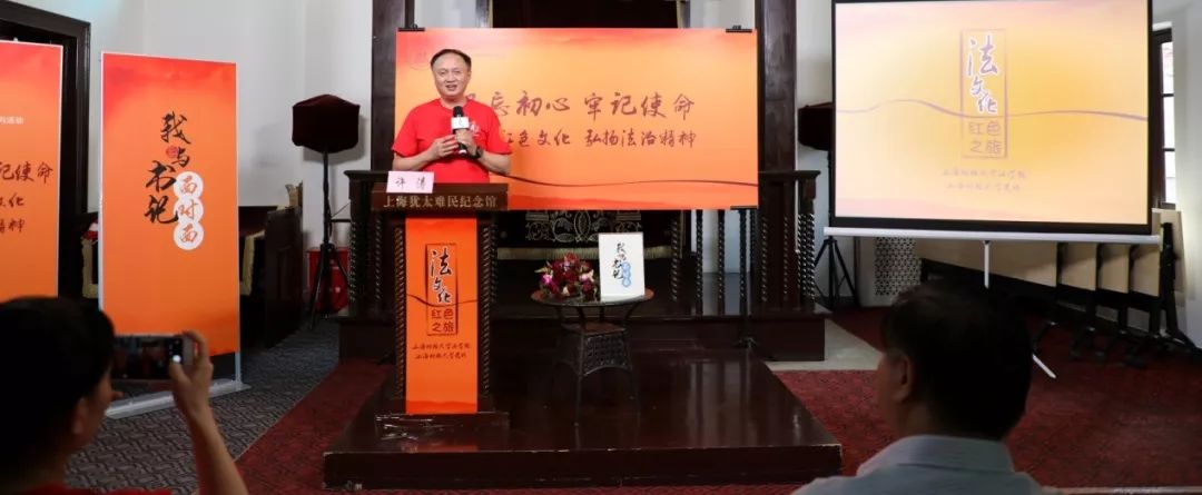 参观结束后,法文化红色资源探寻首站启动会在犹太难民纪念馆现场举办,由法学院党委书记杨乐主持。