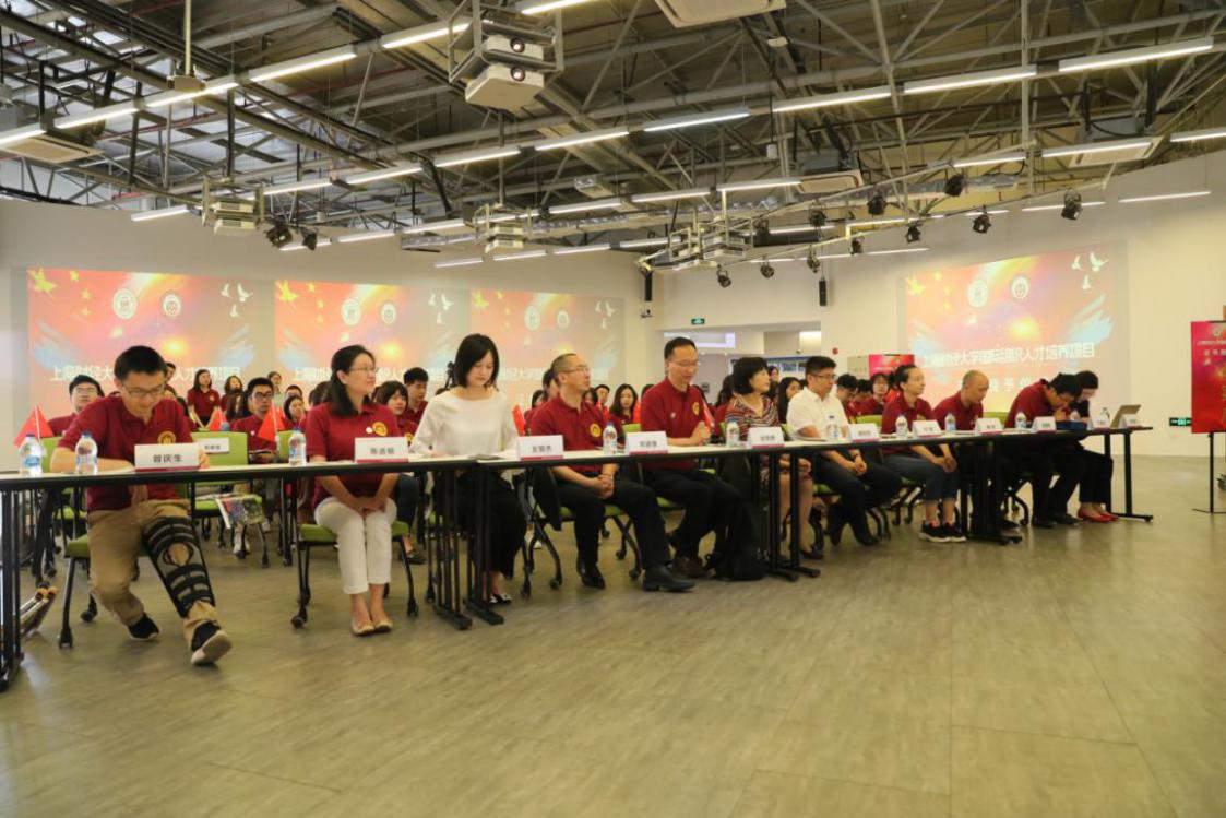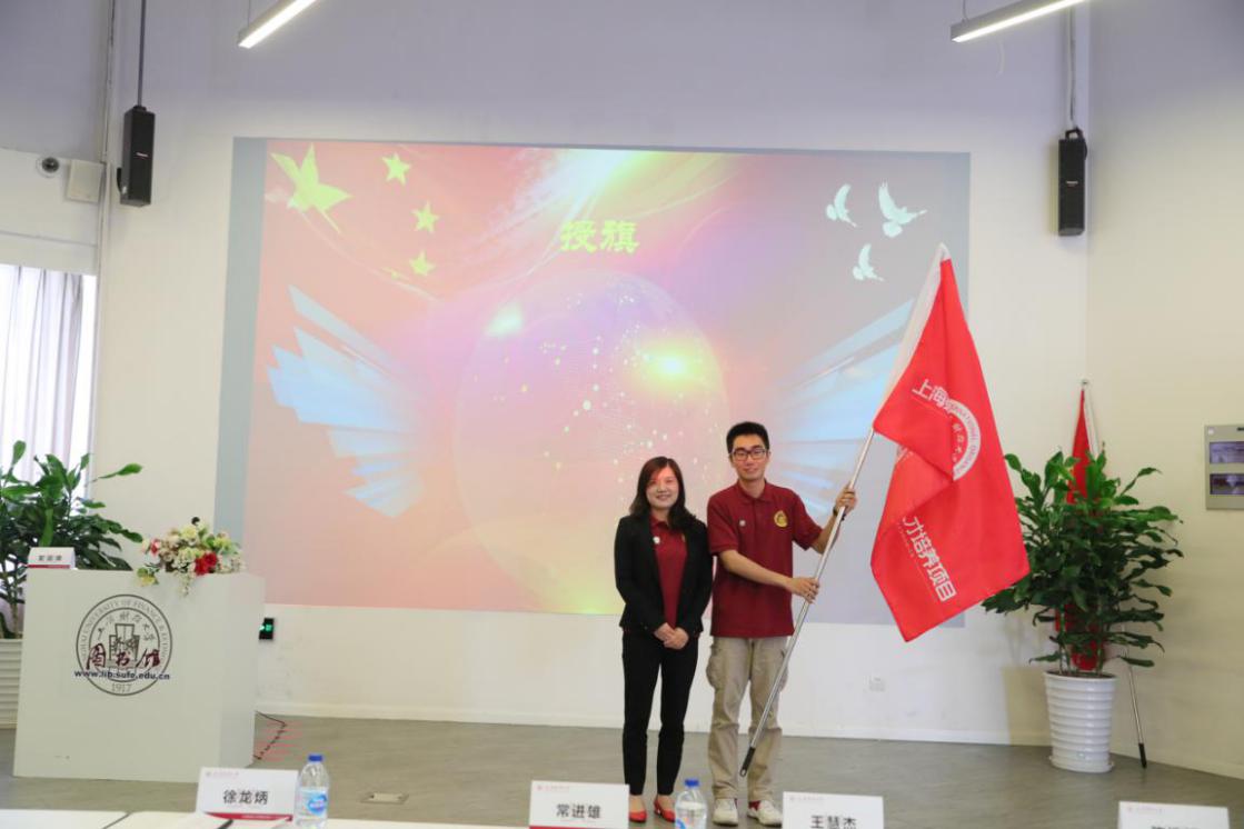 上海财经大学党委学生工作部/研究生工作部部长褚华老师、研究生院副院长李劲松教授、会计学院副院长曾庆生教授、法学院院长助理吴文芳副教授分别为金融学院、经济学院、会计学院、商学院及法学院四期学生代表授旗。