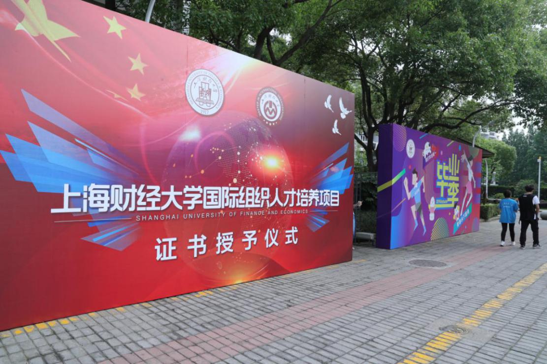 上海财经大学国际组织人才培养项目授证仪式在热烈温馨的气氛中结束。一期、二期项目学生纷纷在合影板处合影留念。