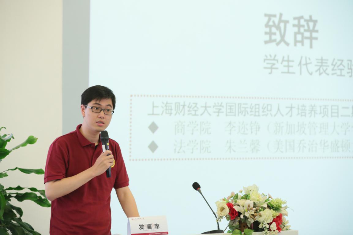 上海财经大学研究生院副院长李劲松教授上台发言,分享了项目设立之初发展至四期、五期的心路历程。他对学校各部门、各学院及研究生院各位老师、学生家长表达了感谢;祝愿一期、二期的同学未来走上工作岗位,继续把握国际组织实习和任职机会,争取更高更远的发展平台;勉励三期、四期同学珍惜在校时间和学校及项目打造的平台机遇,踏实奋进,成为更好的自己。