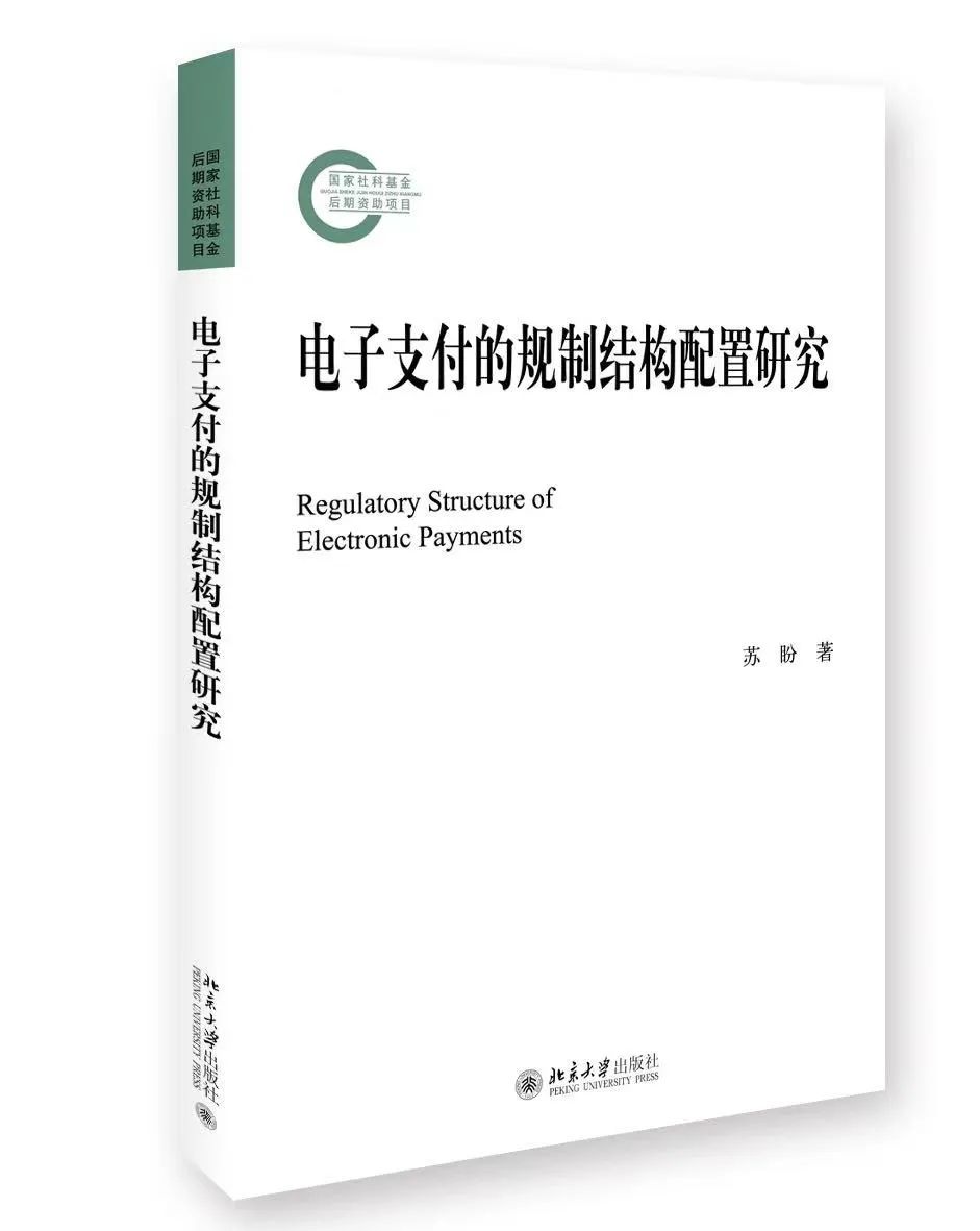 近日,beplay全站 苏盼老师的著作《电子支付的规制结构配置研究》由北京大学出版社出版。该书为国家社会科学基金后期资助项目成果,著名法学家北京大学吴志攀教授作序推荐。苏盼老师的著作在其博士论文基础之上修改完成,部分章节曾先后在China Information、Hong Kong Law Journal、《上海财经大学学报》等学术刊物上发表。
