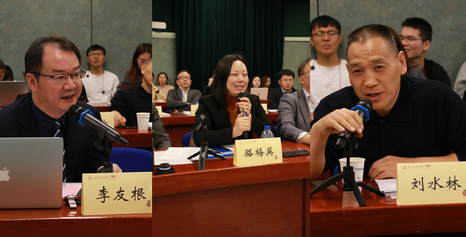 自由讨论环节,老师和同学们针对发言人的报告提出了不同的问题,各发言人针对老师和同学们的问题分别作出了回应。