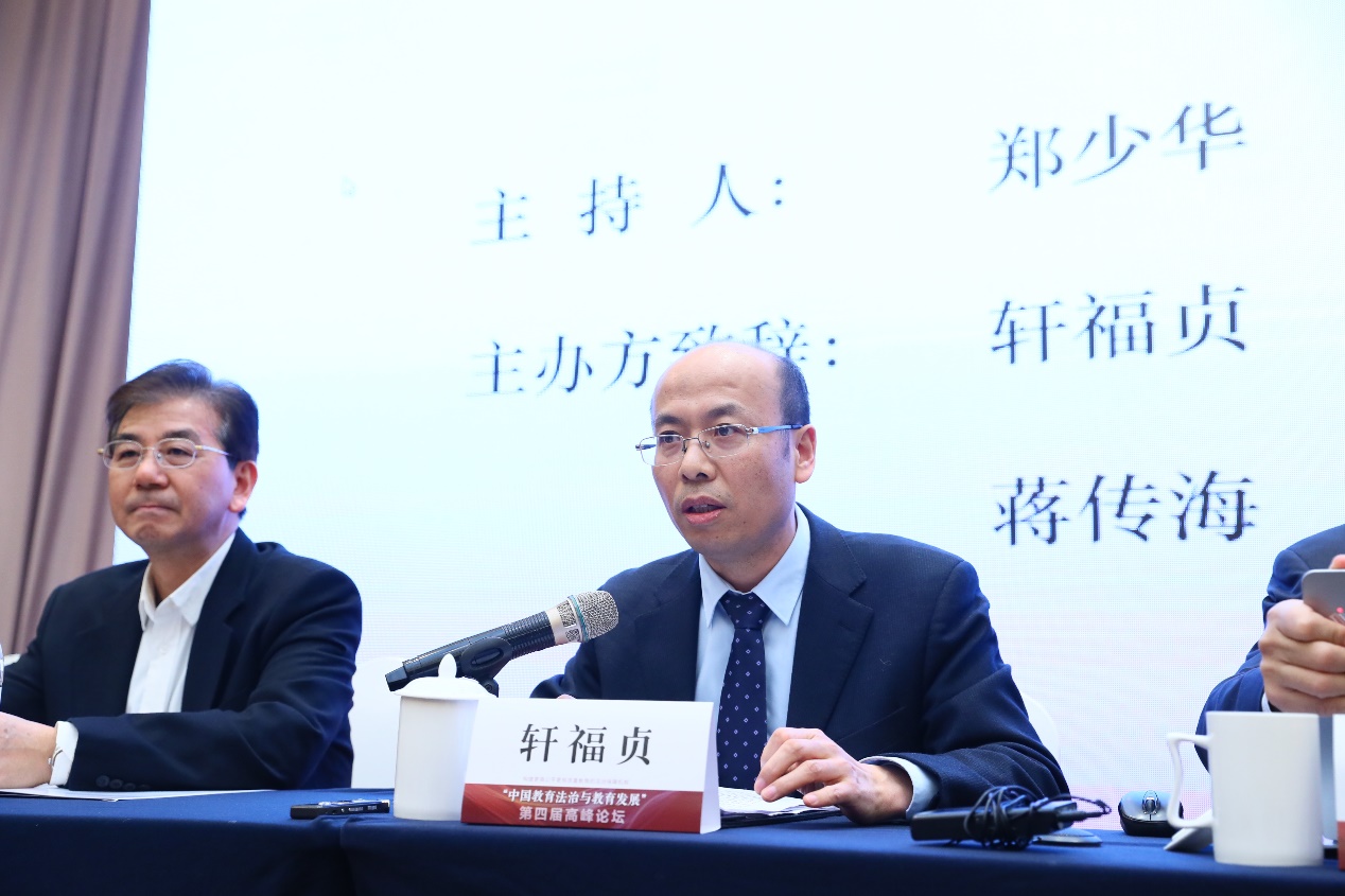 轩福贞在致辞中指出,作为积极响应党的十九届四中全会的高端学术活动,本次论坛的举办对深入学习贯彻党的十九届四中全会精神,研究、阐释和推进教育治理体系和治理能力现代化具有非常重要的意义。他表示,教育是国家和区域核心竞争力的重要支撑,上海作为教育改革发展的排头兵和先行者,始终坚持把教育放在优先位置。要加快推进教育现代化,建设教育强国、教育强市,必须加强教育法治建设、全面推进依法治教。