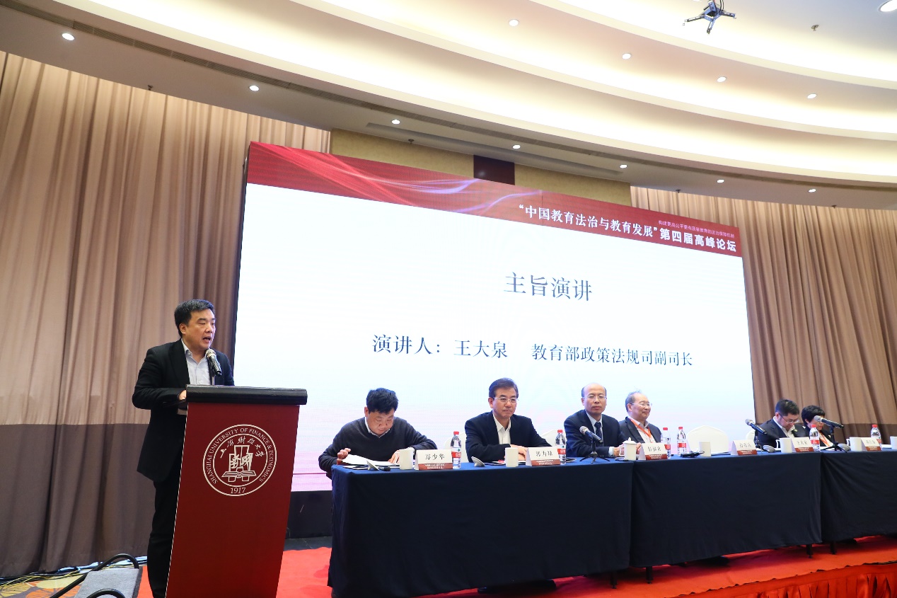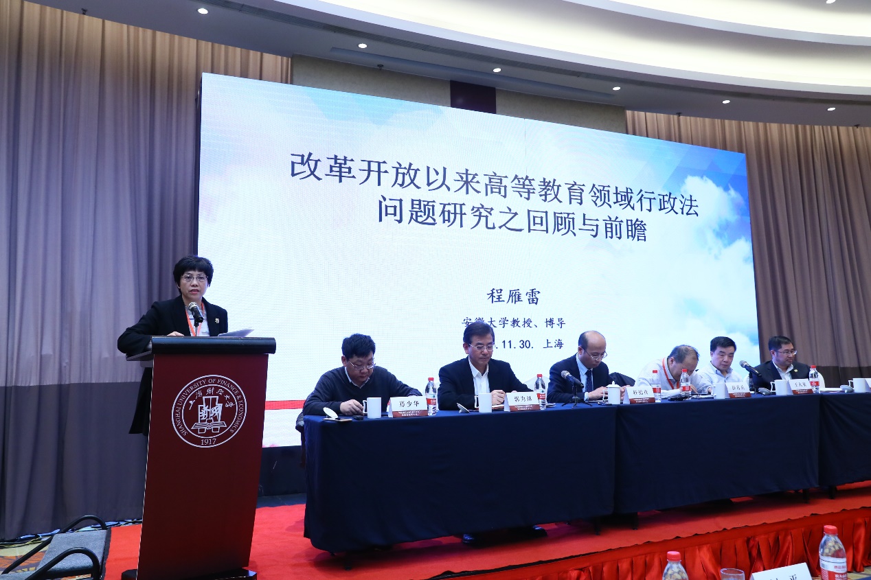 孙霄兵、王大泉、华东政法大学党委书记郭为禄和安徽大学副校长程雁雷分别以“在法治的旗帜下,沿着依法治教的道路奋勇前进”“加快教育立法,助力教育立法现代化”“新时代留学生招培制度完善”“改革开放以来高等教育领域行政法问题研究之回顾与前瞻”为主题作了主旨演讲。