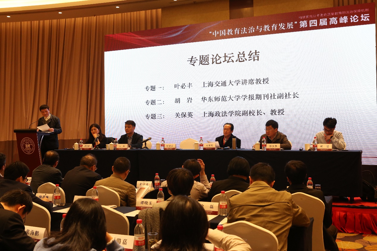 中国教育法治与教育发展高峰论坛2016年创办于上海,每年举办一届,旨在为教育法治与政策方面的专家学者和实务工作者提供高端的学术交流平台,推动聚焦教育法治与发展的基础性、全局性、战略性、前沿性问题,为完善我国教育治理模式、提高教育治理能力建言献策。本届论坛作为十九届四中全会胜利召开后举行的高端学术活动,对于深入学习贯彻党的十九届四中全会精神,研究推进教育法治与教育发展的主要理论、政策、制度等问题,努力寻求新形势下的解决路径和工作着力点,推动教育法治学术发展意义深远。