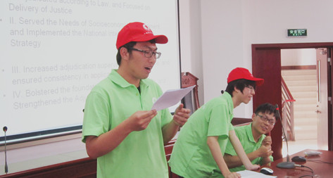 Wearing light green T-shirts and read hats, the presentation group gave the audience an introduction of World Intellectual Property Day and the IPR Protection Week at first. Then they focused on the judicial operations in protection of intellectual property rights. After that, they showed related dates in 2012, which marked the increasing of new intellectual property-related civil, administrative and criminal cases of first instance.