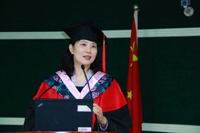 The Ceremony, which was moderated by Vice-professor Zhou Jiepu, SHUFE Law’s Secretary of CPC Committee, began around solemn national anthem. Assistant Principal and Executive Vice-president of Graduate School Zheng Shaohua firstly shared three keywords with graduates, that is Transformation which means they have to transform their identity of student into their duties in time, Responsibility which means work and essay is both too important to give up, Diligence which means study diligently is of a paramount importance. Secondly, Professor Zheng Shaohua impressed that a legal person should have three qualities, one is rational and independent thinking, one is distinguishing good and evil by inner conviction, the rest is facing life bravely even though it’s not good. Only if we have all these three qualities can we really be the backbone of our nation.